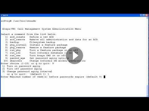This video demonstrates how to use the cmsadm utility to turn password aging on or off and change the aging interval on Call Management System (CMS) Solaris servers. Produced by Jerri Lee Bandt