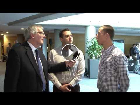 Brian Dolby speaks with Juan Felipe Loaiza, FIS Solutions, Product Manager at FIS Solutions, a Calix Channel Partner based in South America during the 2016 Calix Partner Summit.