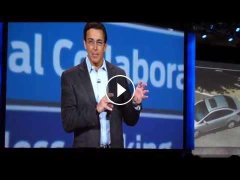During a keynote presentation at CES2015, Ford Motor CEO Mark Fields discusses solutions for parking in congested urban areas. MAH05592