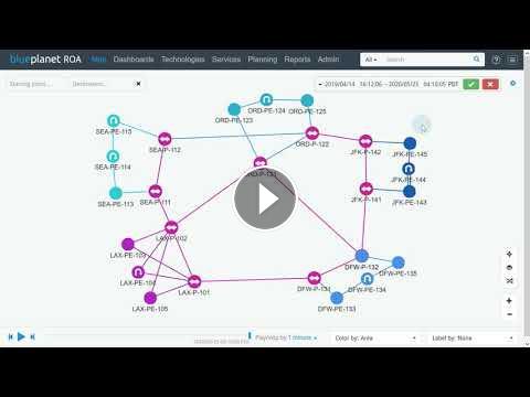 Use Blue Planet ROA to go back in time to find the cause of a network issue on a path between a Seattle and New York router. You can use this feature to view historical times for reports, performance and event graphs, mini maps, context pages, and the topology map.