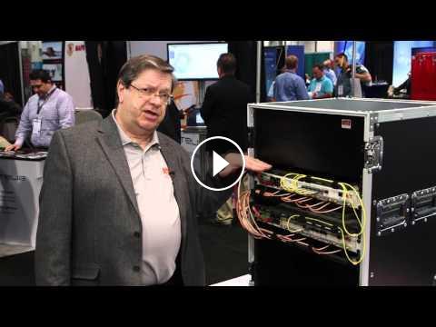 Gary Spedaliere, Director of Technical Sales at Dali Wireless shows us their all digital RF distribution system. The system operates at a 6Gb data rate and will handle 164 Mhz on a single fiber.