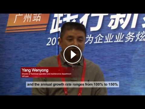 VIPShop's business volume keeps increasing at an annual rate of 100% to 150%. In 2013, VIPSHOP's sales revenue reached up to CNY12.6 billion. One of the challenges for VIPShop is to build a high-performance, scalable network system and choose Huawei as their partner. Mr. Yang Wenyong, Director of O&M Technology Department, said: "We selected Huawei CE12800 because of its high quality, high performance, and high scalability. We've deployed Huawei CE12800 in three data centers, and we'll complete reconstruction of another data center by the end of 2014."