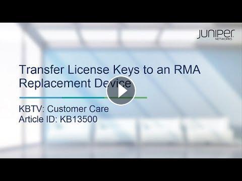 This video will show how to transfer a license key from a defective Juniper device to an RMA replacement device. The text version of this video is available at http://kb.juniper.net/KB13500.