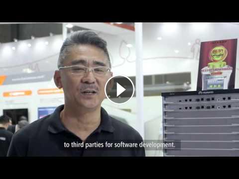 Mr. Tabata of Huawei Technologies Japan explains the evaluated points of the S12700 series switch that helped it win Interop Tokyo's “Best of Show Award” .