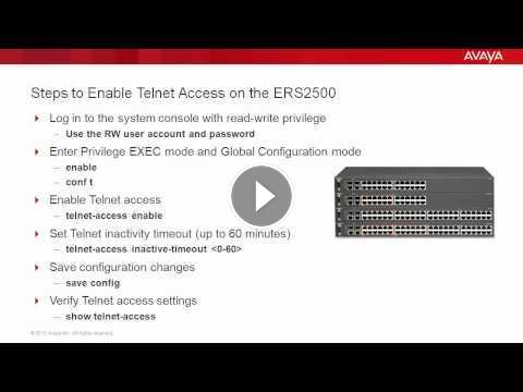 Video on how to enable Telnet access on the Avaya ERS2500. Produced by Adonny Raphael.