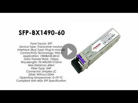 SFP-BX1490-60 | ZyXEL Compatible 1000BASE-BX-U SFP Tx1490nm/Rx1310nm 60km