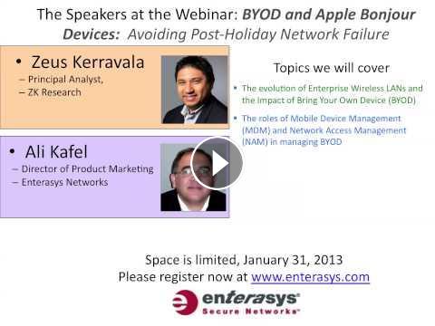 Sign Up For Enterasys BYOD And Apple Bonjour Devices Webinar - January 31, 2013