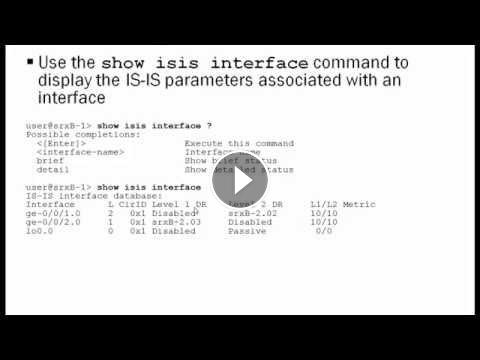 IS-IS Configuration learning byte covers basic configuration of the Intermediate System to Intermediate System configuration on all Junos routing platforms. This learning byte also covers commands to verify that the configuration is working properly. This learning byte is most appropriate for users that have attended the Introduction to the Junos OS and Junos Intermediate Routing courses or have equivalent experience.