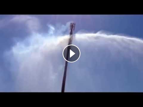 The week of 6/16/15 a tower behind a Newport News, Virginia high school caught fire. Video originally taken by Newport News Fire Department.