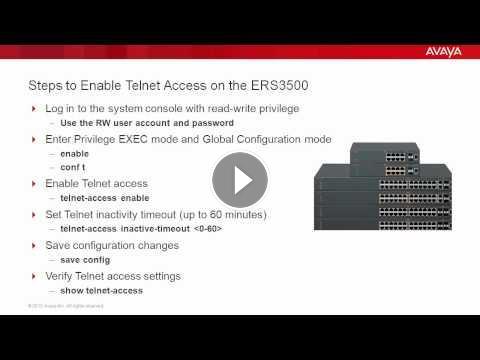 Video on how to enable Telnet access on the Avaya ERS3500. Produced by Adonny Raphael.