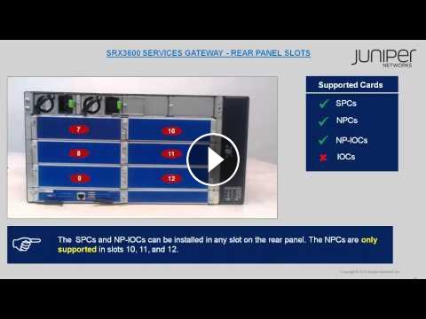 This video describes the slots on an SRX3600 Services Gateway used for installing the various cards. It also provides information on the minimum configuration required, maximum cards supported, and NEBS and ETSI compliance requirements.