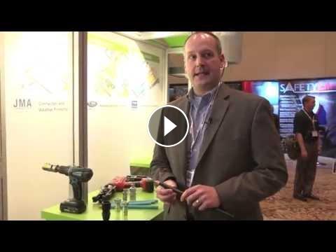 Shawn Chawgo, Vice President of Product Management for JMA gives a demonstration of their unique compression connectors for cell towers.