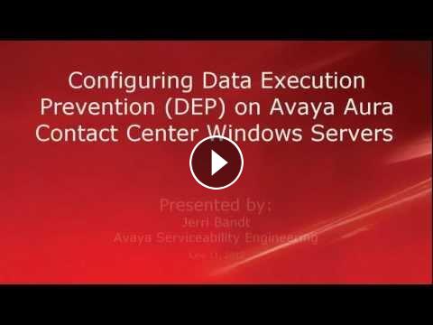 This video covers how to configure Data Execution Prevention (DEP) on Avaya Aura Contact Center (AACC) Windows Servers. Produced by Jerri Bandt