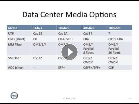 Here the FOA presents an unbiased view of cabling based on our own research and feedback from those we know designing them and building them. We cover not only fiber optics but copper cabling and how the design of the switches and servers can affect cabling choices.