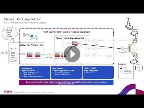 In the Lab Video: Ciena's Fiber Deep (Converged Interconnect Network) Solution enabling cable MSOs with an Adaptive Network. In this video - the Ciena solution is interoperating with a Harmonic R-PHY device (RPD) and a Harmonic virtual CCAP (vCCAP) and streaming Ciena's 'The Age of Networks' video.