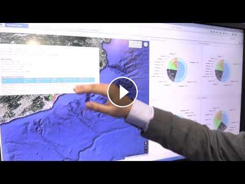 EXFO representative demonstrates the company's end-to-end analytics platform called EXFO Extract at Mobile World Congress 2015.
