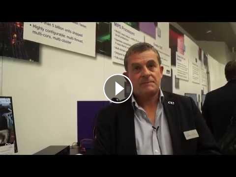 Tony King-Smith, EVP of marketing--technology division for Imagination Technologies, demonstrates region of interest encoding, which only encodes moving bits of video to lower bit-rate of data transfer. In the content of mobile video, region of interest encoding would reduce data usage. MAH05630
