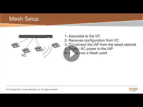 Mesh terminology and setup in a cluster is explained. An IAP joining as a mesh point and mesh commands are demonstrated.