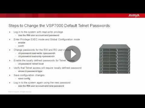 Video on how to change the Avaya VSP7000 default Telnet passwords. Produced by Adonny Raphael.