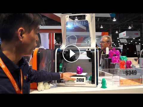 Frank Peng, assistant sales development associate for XYZprinting, showcases the da Vinci Jr. printer, available for $349. It's designed for in-classroom and beginner use. MAH05647