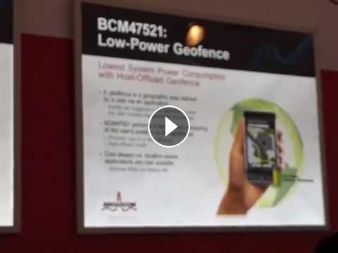 Broadcom showcases a chipset that can monitor a geofences without draining a device's battery. The chip "wakes up" when it nears a geofence, but does not drain the battery when a geofence is not in range.
