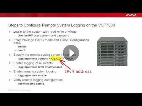 Video on how configure and enable remote system logging on the Avaya VSP7000. Produced by Adonny Raphael